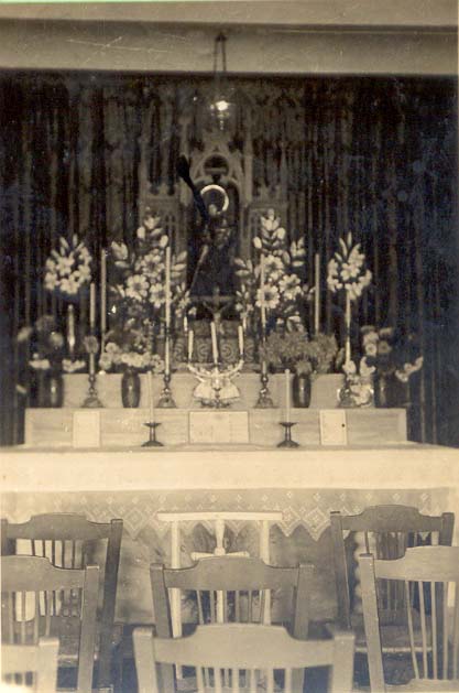 1934 Altar del garatge-capella Data: 28/06/05 Primer Altar situat a l'interior del Garatge-capella de la família Escarrabill, on se celebraven les primeres misses del barri.