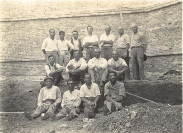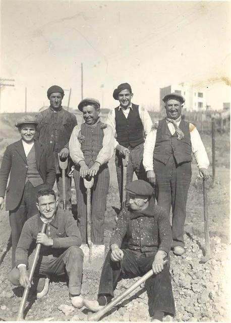 1935 Paletes de les obres de la capella. Data: 28/06/05 Paletes que van participar en les primeres obres de la parròquia. Any 1935.