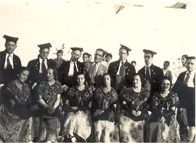 1935 Inaguració de la capella. Data: 28/06/05 Els components de l'esbart que van a participar al festival de sardanes i danses catalanes el 15 d´agost de 1935 després de la benedicció i inaguració de la capella de Sant Antoni de Pàdua.