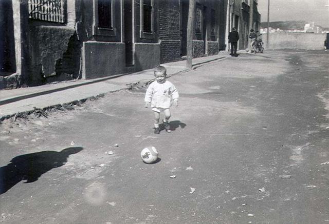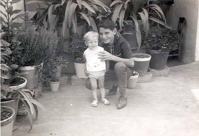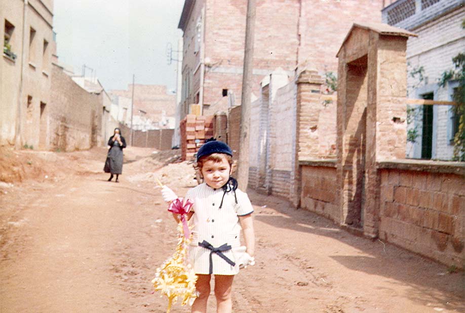 Foto situada al Cer. Perez Galdos cantonada Cer. Europa debant torre de Radio Gloria en la foto la Ginesa Zamora en brassos el fill Bartolome i els nebots Diego i Dami