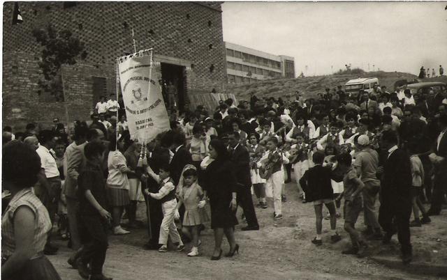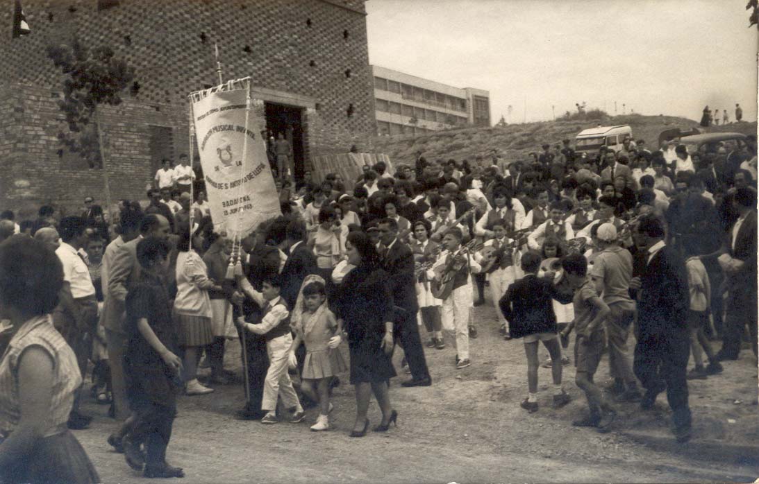 Fotografia presa al pati del col·legi nacional de Llefià a l'Agrupació Musical Infantil de Sant Antoni de Llefià .