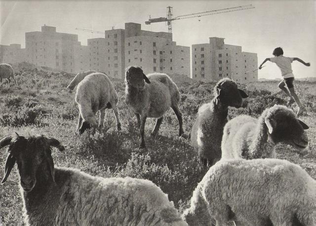Fotografia presa de manera automàtica per Manel Martín. Hi surten Manel Martín i la seva esposa Felisa Molina en els terrenys on posteriorment hi hauria una zona enjardinada entre els pisos anomenats d'IBUSA (entre l'av. Amèrica i l'av. Atlàntida), coneguda popularment com "La Fuente de Colores". La foto se situa enfront de l'actual local de l'AV Sant Joan de Llefià Alt, just on hi ha una taula de ping-pong. Feta amb una càmera Mamiya Secor i revelada per Manel amb una ampliadora Durst.