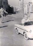 1966. Carrer Pérez Galdós. Fons: Ginesa Zamora Martínez Data: 24/11/08 Foto situada al Cer. Perez Galdos cantonada Cer. Europa debant torre de Radio Gloria en la foto la Ginesa Zamora en brassos el fill Bartolome i els nebots Diego i Dami