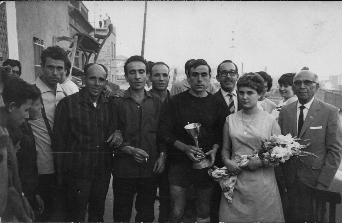 Entrega de premis partit festa major, podem beure recollin el premi a Sr. Silvertre mes conegot per el "EL PATO" Sr. Rizo alcalde de barri, Sr. Viles president del Llefia entre altres.