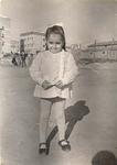 Gisela Valero a l'actual plaça Trafalgar, la casa que es veu al fons a la dreta és Can Batllori, en aquesta casa es trobava el pou que subministrava d'aigua potable al barri fins al maig de 1947, data en què es va assecar.