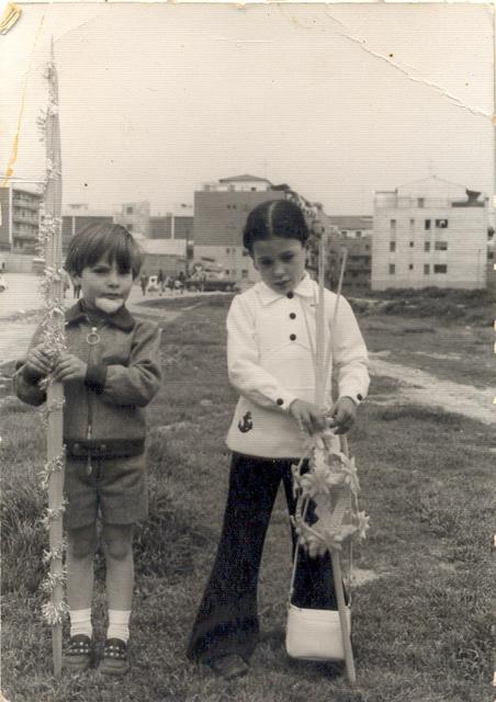Fotografia presa en l'actual Av. Pius XII, a primer terme David i Carlota Pérez.