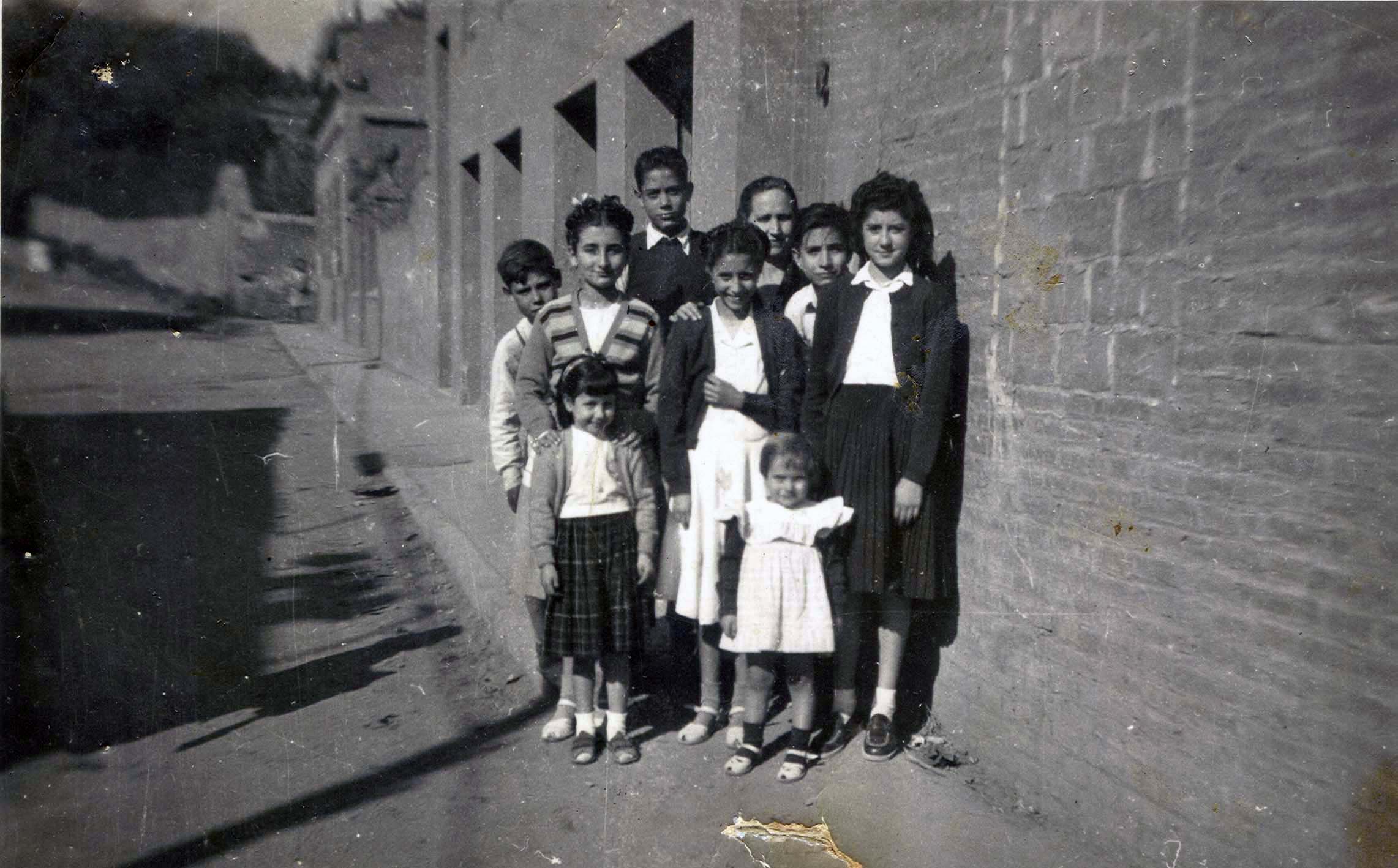 Carretera Mena davant del carrer Rius i Taulet. A la fotografia un grup de nens al carrer.