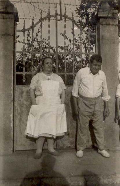 Casa de la família Manera a la carretera de Mena. A la fotografia la Sra. Pepeta i el Sr. Miquel, propietaris del forn de pa del carrer Rius i Taulet.