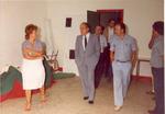 Any 1985. Visita del Molt Honorable President de la Generalitat a l'AV Sant Antoni. A la fotografia els locals del Cercle Artístíc a l'Escola d'Adults situada al carrer d'Europa. A la dreta, la Teresa, el president Pujol, Antonio Agudo (Julio) president de l'AV Sant Antoni i Manuel Sousa.