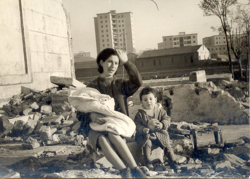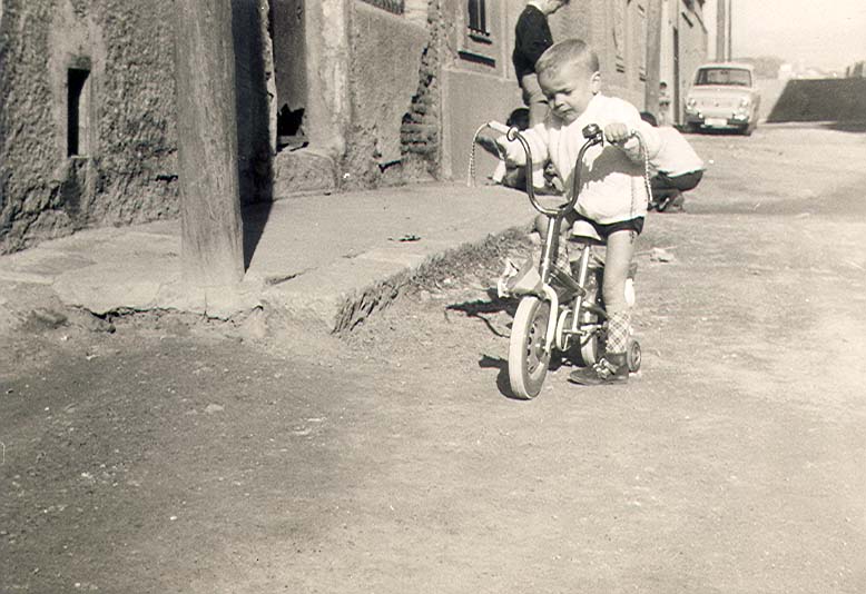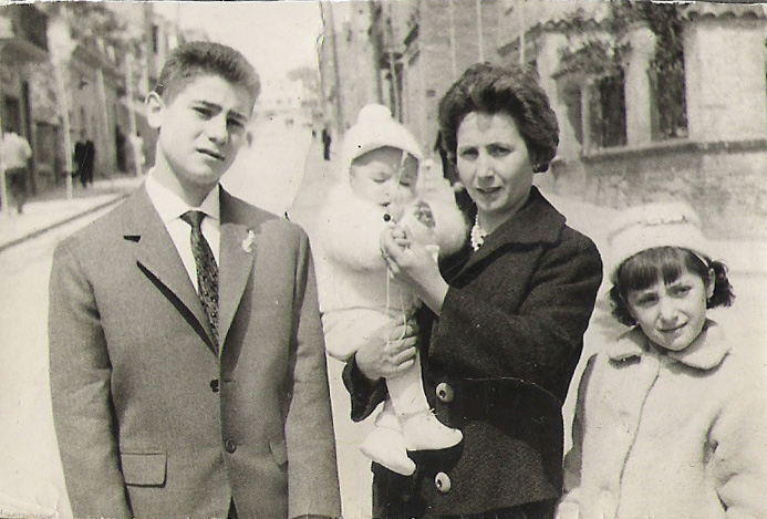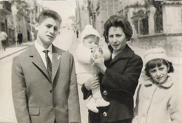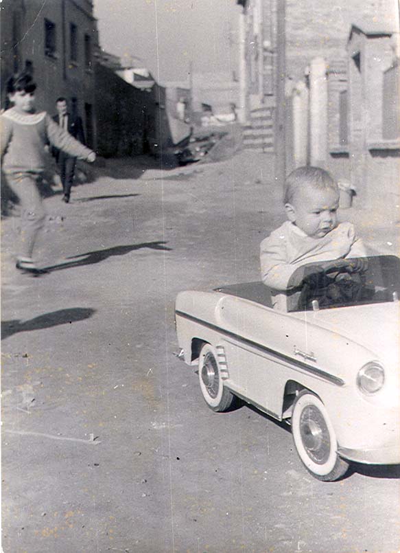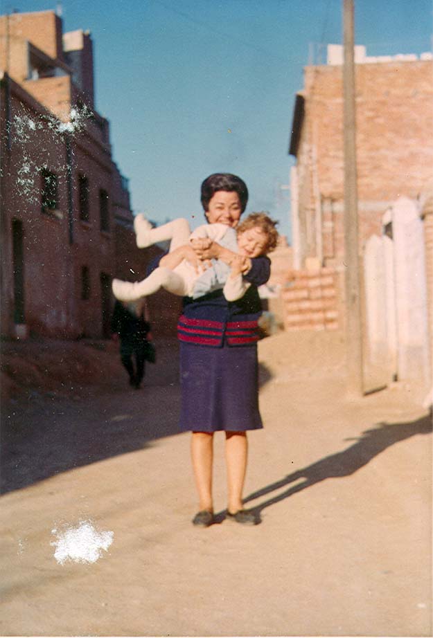Foto situada al Cer. Perez Galdos cantonada Cer. Europa debant torre de Radio Gloria en la foto la Ginesa Zamora en brassos el fill Bartolome i els nebots Diego i Dami
