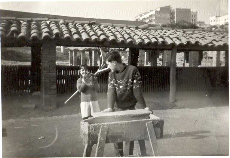 Pati de la bòbila del Serret. A la fotografia els germans María del Carmen i Miguel Martínez Rojo
